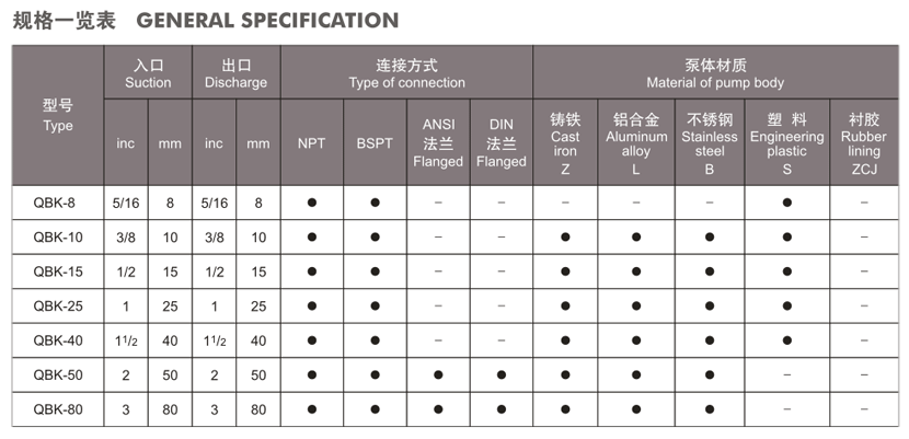 ■ 產(chǎn)品概述QBK氣動隔膜泵是我公司開發(fā)的第三代氣動隔膜泵,具有使用壽命長,不會停頓等優(yōu)點,它既能抽送流動的液體,又能輸送一些不易流動的介質(zhì),具有自吸泵、潛水泵、屏蔽泵、泥漿泵和雜質(zhì)泵等輸送機(jī)械的許多優(yōu)點。